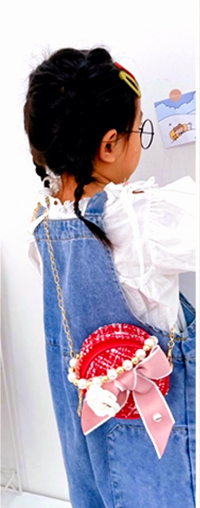 BELLO BOLSO REDONDO CON LAZO Y FLOR, PARA NIÑA
