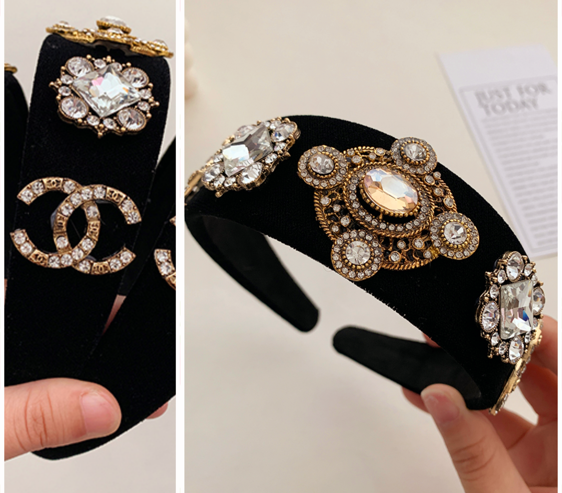 MATERIAL: TELA, ALEACIÓN Y CRISTALES DE IMITACIÓN.