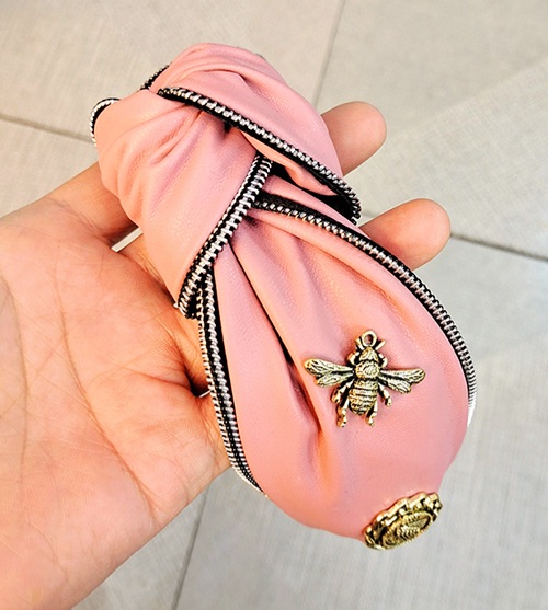 Diademas de moda con abeja y cremallera color rosa.