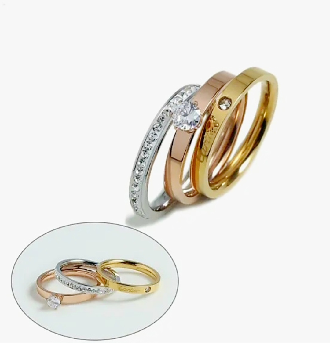 DIVERTIDOS CONJUNTOS DE ANILLOS EN ACERO INOXIDABLE. DORADO Y PLATEADO.