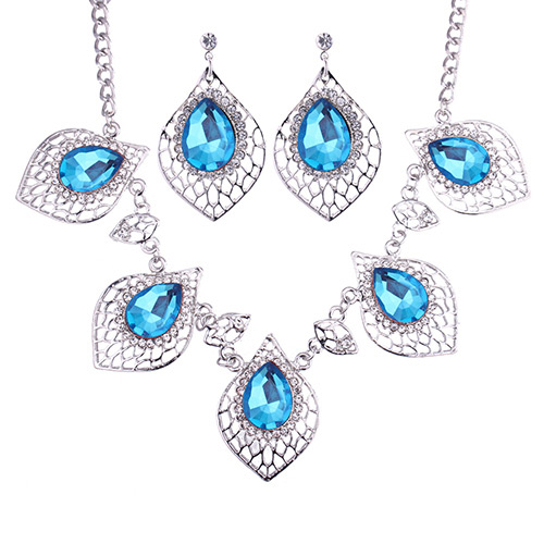 BELLO CONJUNTO DE CADENA Y ARETE AZUL CON OSO INSPIRADO A TOUS.