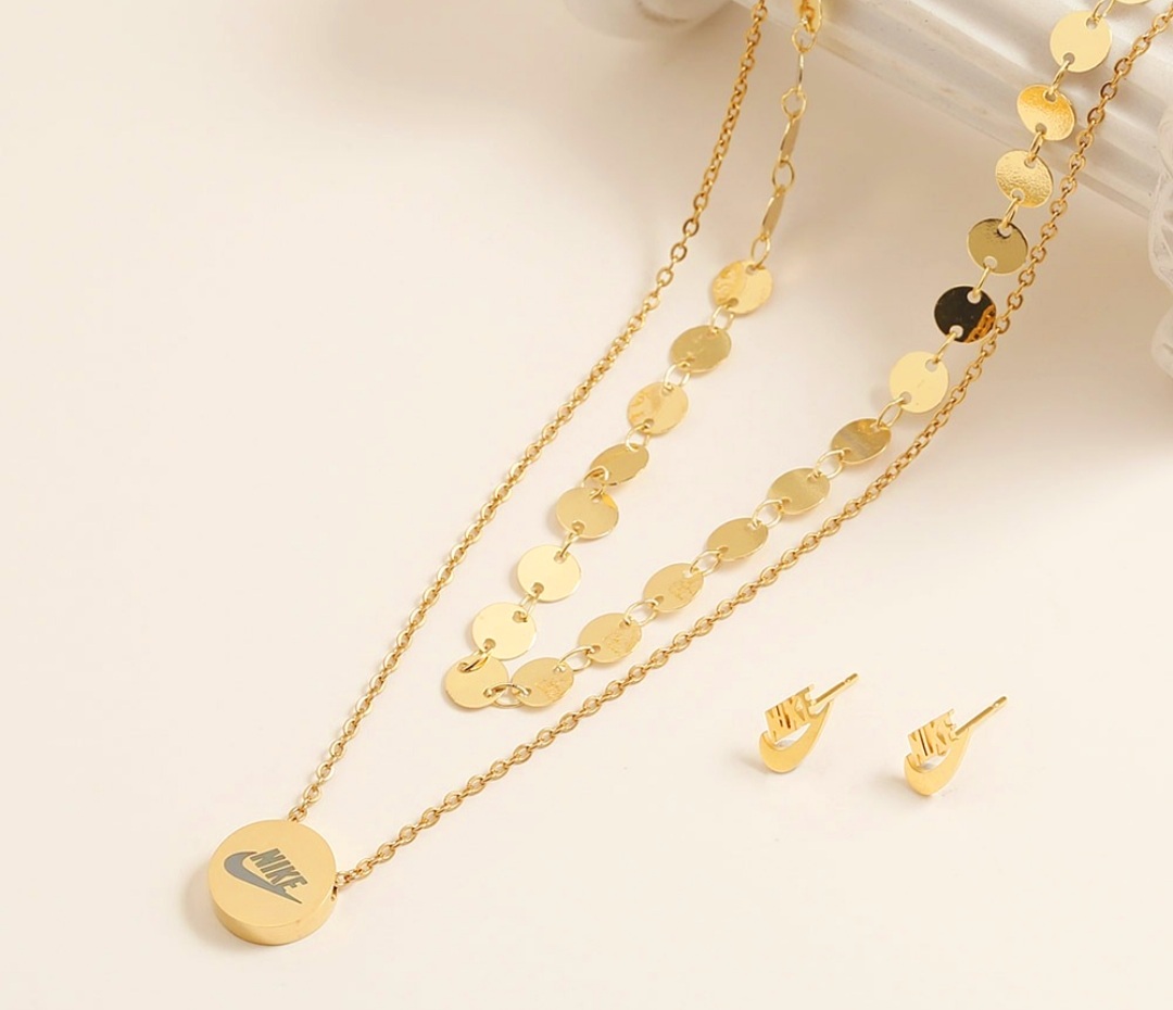 CONJUNTO CADENA DOBLE Y ARETES. INSPIRADO A NIKE.