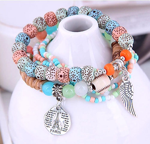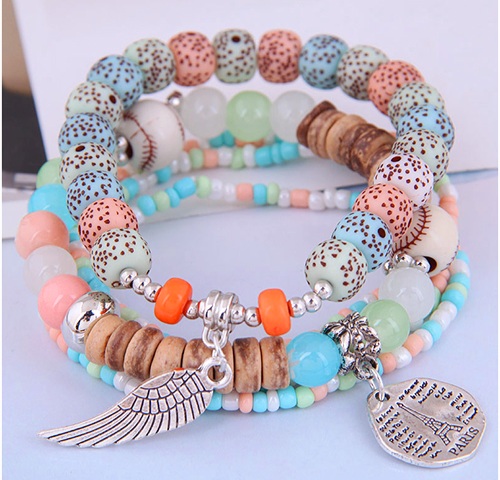 HERMOSO CONJUNTO DE PULSERAS MULTICOLOR CON ALA.